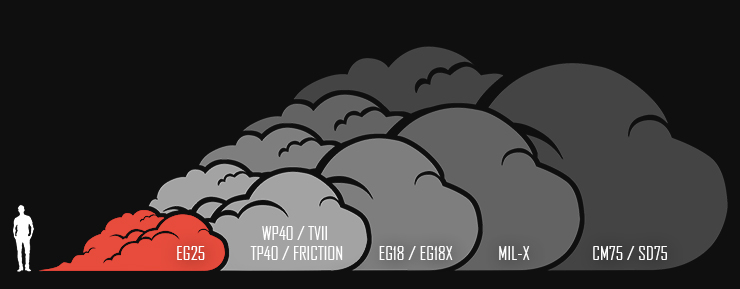 Malý a kompaktní s možností produkovat vzhledem ke své velikosti značně velký barevný kouřový oblak. Snadno lze přenášet více kusů, takže je skvělým doplňkem výbavy každého fotografa. Model EG25 je náš nejmenší efekt, navíc je vybaven naším mimořádně spolehlivým zapalovačem Wire Pull®.